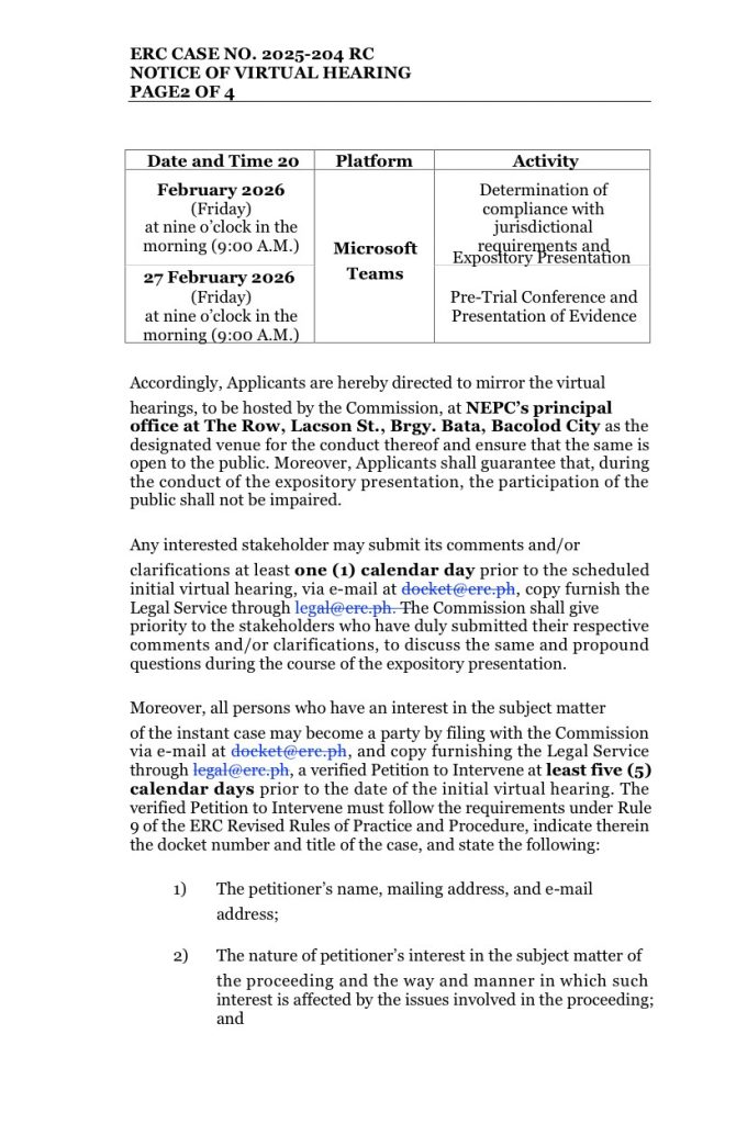 Public Mirroring: For stakeholders without stable internet access, Negros Power will host a “mirroring” (live streaming) of the virtual hearings at our Principal Office: The Row, Lacson St., Brgy. Bata, Bacolod City.